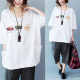 清濯 文艺大口袋 宽松休闲纯棉大T恤五分袖 小清新中长款中袖体恤