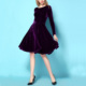流淌的月光~2017专柜春秋长袖超大摆金丝天鹅绒舞会王妃范连衣裙