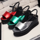 2017夏季新款凉鞋女头层牛皮厚底松糕鞋银色真皮时装凉鞋爆款百搭