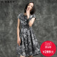 s.deer圣迪奥女2017夏装新款斑驳抽象印花高腰OL连衣裙S15281270