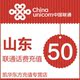 山东联通50元 联通话费充值 手机话费充值卡 官方直充快充秒充