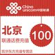 北京联通100元 联通话费充值 手机话费充值卡 官方直充快充秒充