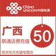 广西联通50元 联通话费充值 手机话费充值卡 官方直充快充秒充