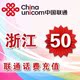 浙江联通50元手机话费充值 自动充值 快充 秒充 即时到账