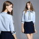 蝴蝶结雪纺女七分袖早秋小清新立领衬衣A字半身裙套装可单卖