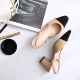 凉鞋女夏2017新款百搭韩版中跟羊皮真皮浅口拼色方头粗跟包头凉鞋