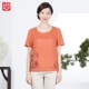 葵牌中老年夏装女新款短袖棉麻t恤宽松上衣绣花民族风妈妈小衫