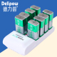 德力普9V充电电池 无线话筒麦克风 9V电池充电器套装1充8电