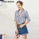 VeroModa2017夏季新款条纹两穿袖落肩七分袖宽松衬衫女|317231525