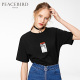 预售太平鸟女装2017夏新款圆领印花短袖宽松针织衫女 休闲T恤女