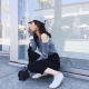 新款韩版黑色开叉v领吊带连衣裙两件套女夏学生背心裙宽松长裙子