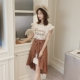 女装春装2017新款时尚百搭字母短袖T恤格子鱼尾半身短裙两件套装
