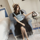 春夏季时尚套装女2017新款潮韩版牛仔背心短袖网纱连衣裙子两件套