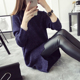 冬季中长款毛衣裙女套头毛衣秋冬宽松韩版高领冬装加厚衣服外套潮