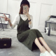 秋冬中长款吊带背心裙背带裙毛衣宽松韩版毛线裙连衣裙女毛衣裙潮