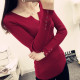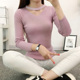 秋季外套女装V领长袖修身打底衫针织衫女式套头短款毛衣女秋冬装