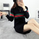 宽松半高领套头毛衣女秋冬季外套女长袖打底衫针织衫中长款连衣裙