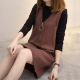 春装新款女装中长款拼接两件套装裙毛衣裙冬季宽松套头针织打底衫