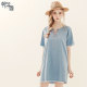 韩芝霏春季牛仔连衣裙女中袖牛仔裙五分袖宽松a字显高瘦系带V领裙