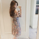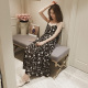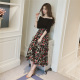 春夏季甜美一字领吊带碎花连衣裙中长款露肩雪纺裙女度假大摆长裙