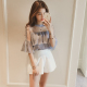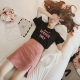 春夏季套装裙新款韩版露肩字母短袖t恤连衣裙女网纱半身裙两件套