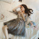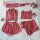春夏季薄款长袖开衫睡衣套装女装吊带背心+短裤+长裤家居服七件套