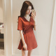 2017春夏季新款韩版V领短袖连衣裙女装收腰显瘦a字型打底裙中裙子