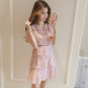 2017夏季新款韩版荷叶边网纱拼接灯笼袖连衣裙女装宽松半袖仙女裙