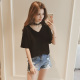 夏天2017新款韩版百搭宽松短袖上衣女装V领黑色半袖t恤打底针织衫