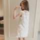 春夏季新款韩版荷叶边钩花镂空蕾丝短袖连衣裙女装打底a字裙子潮