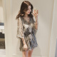 2017夏季新款韩版V领羽毛刺绣七分袖雪纺连体裤短裤女休闲连衣裤