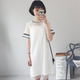 2016韩国BF学院风休闲短袖T恤下摆开衩中长款连衣裙大码宽松T恤女
