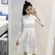 2017春装新款韩版淑女气质刺绣花边领收腰长袖蕾丝连衣裙女打底裙