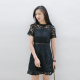 2017夏季新款气质圆领收腰短裙简约钩花镂空显瘦高腰蕾丝连衣裙