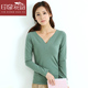 40支奥黛尔V领纯棉长袖女t恤秋装百搭大码修身打底衫上衣6022