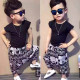 男童女童黑色短款上衣t恤+大象飞鼠裤两件套装2017夏3-8岁O A294