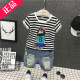 2017夏装新款韩版男童时尚卡通条纹短袖T恤儿童时尚牛仔短裤套装