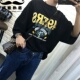 2017春新款韩版印花字母宽松打底圆领落肩七分袖显瘦百搭T恤女
