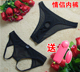 情侣情趣内衣男士露JJ女士开档内裤性感透视透明丁字裤真人露毛骚