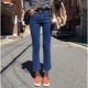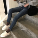 [ELINASEA]小海 韩版修身磨白光板小脚裤脚前凹撕边牛仔裤女