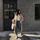[ELINASEA]小海推荐 经典百搭显瘦毛边微喇撕边加绒牛仔九分裤女