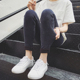 春秋韩版薄款黑色九分运动裤女大码休闲裤学生显瘦小脚哈伦裤子潮