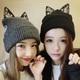 欧美新款蕾哈娜同款蕾丝水钻可爱猫耳朵针织毛线帽子女秋冬天韩版