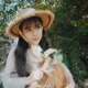 晚晚网红同款绑带草帽沙滩帽防晒遮阳帽海边度假帽子女夏小清新