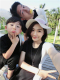 LUSON 亲子装T恤2017夏装新款针织黑白拼色不规格连衣裙父子装T恤