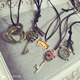 新款复古文艺皮绳闹钟小熊十字架吊坠挂件毛衣链长款项链