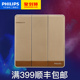 飞利浦开关插座墙壁面板飞逸香槟金一开双控单开双控一联双控