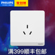 飞利浦开关插座 五孔插座电源插座飞逸银墙壁插座面板一键搞定