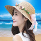 防晒草帽女士夏天户外出游帽子可折叠遮阳帽防紫外线蝴蝶结太阳帽