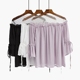 一字领露肩雪纺上衣超仙女气质夏新款镂空网纱喇叭袖小清新蕾丝衫